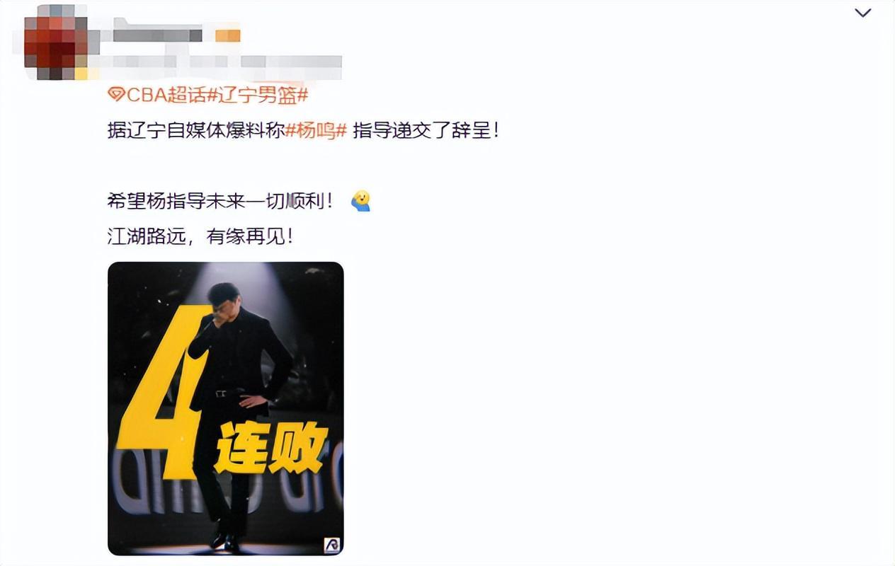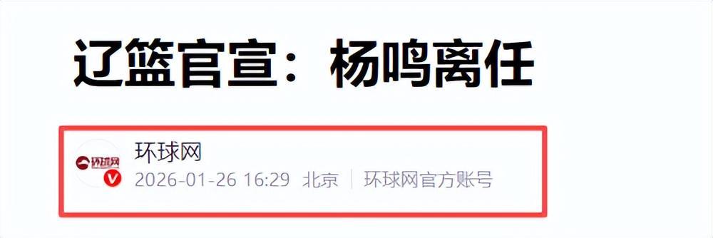 环球网2026-01-26《辽篮官宣:杨鸣离任》
